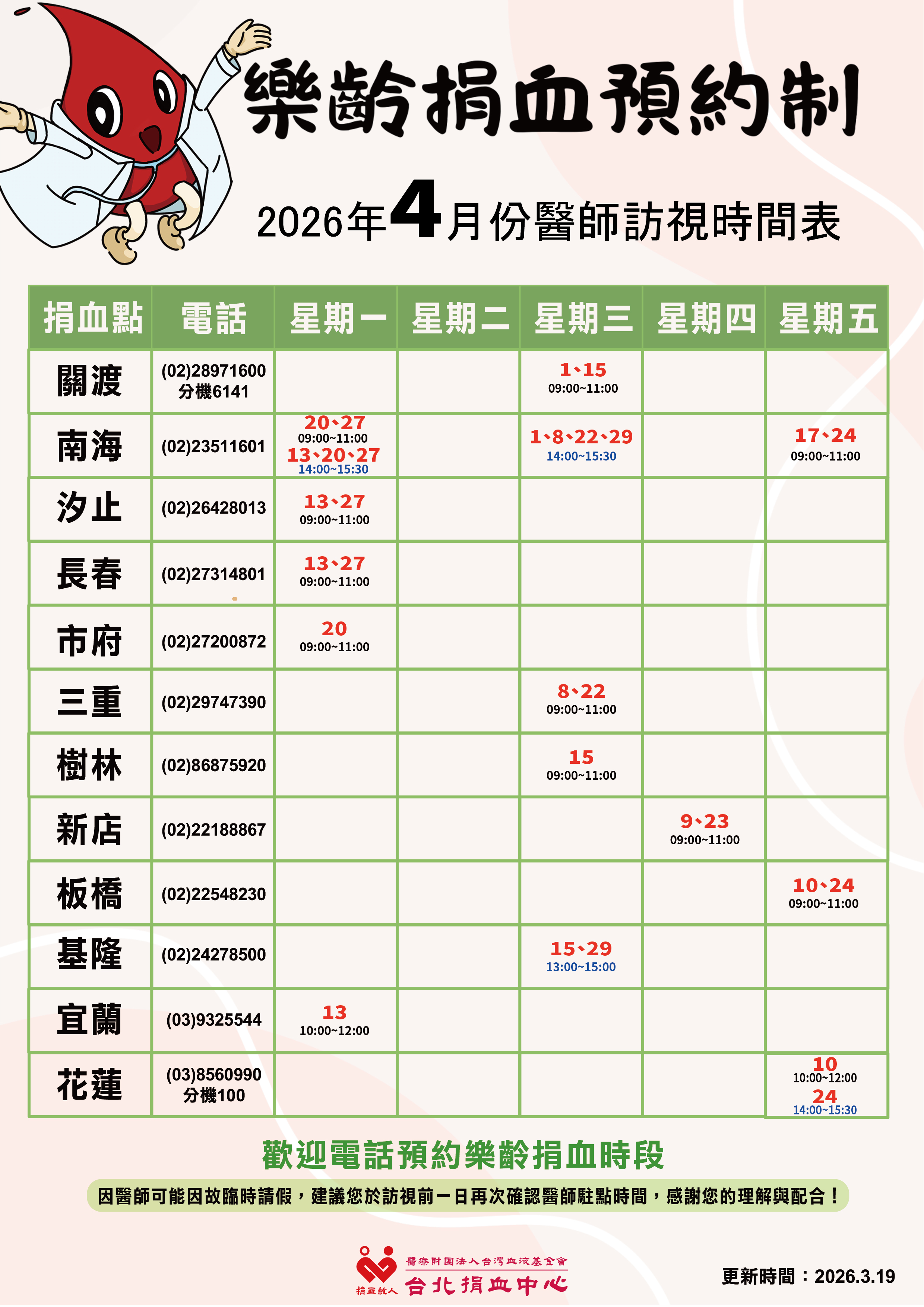 樂齡捐血醫師訪視時間表